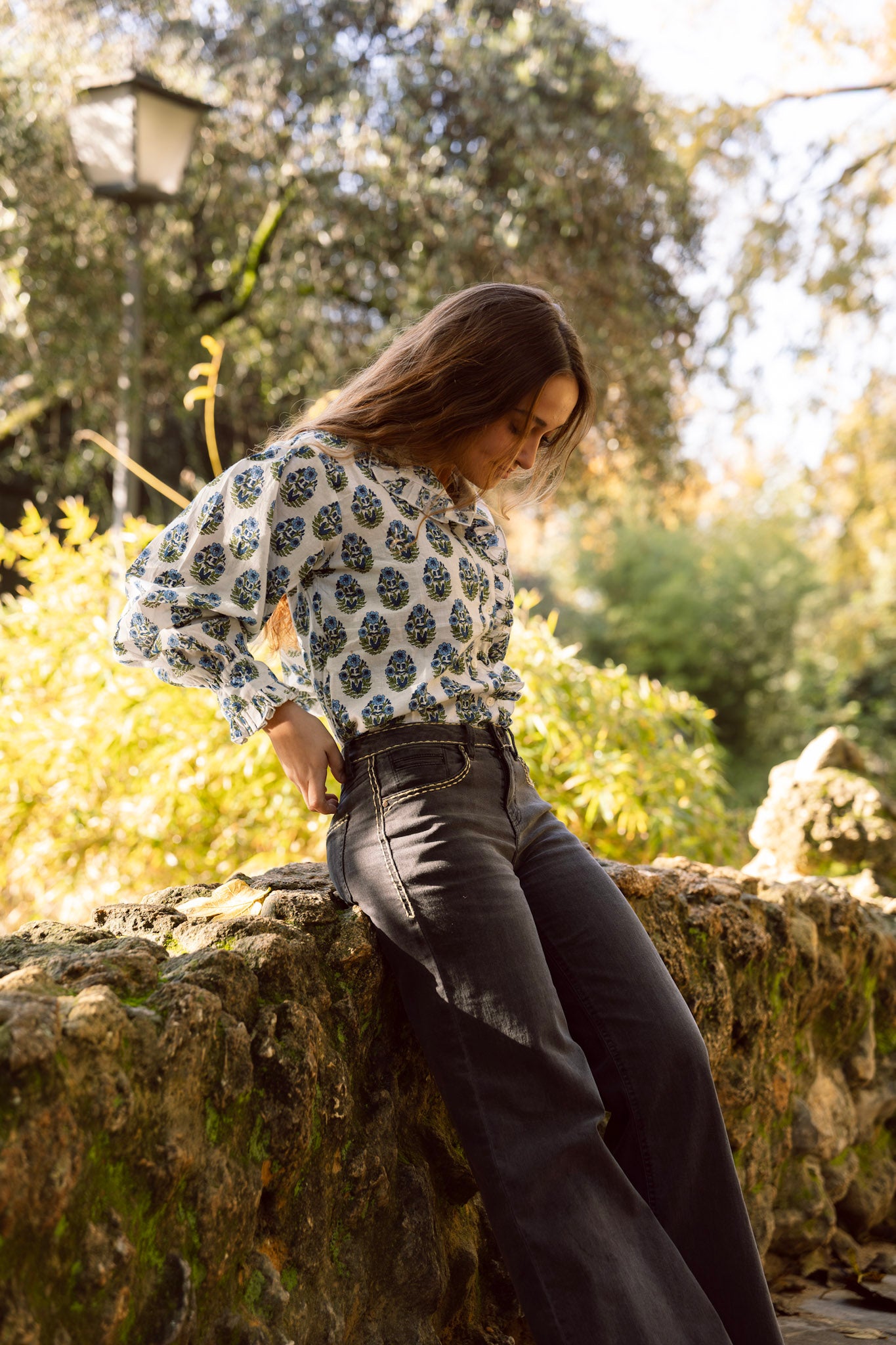 Camisa blanca flores azules